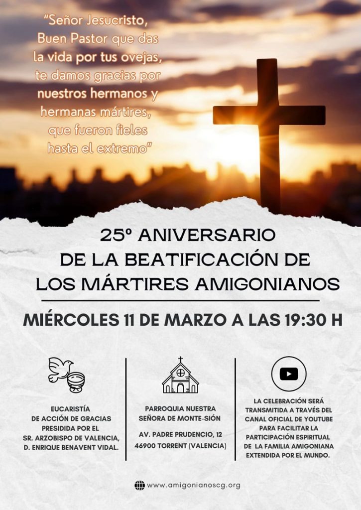 “Aquella celebración marcó profundamente la memoria de nuestras congregaciones y de toda la Familia Carismática Amigoniana. Este año 2026, al cumplirse el 25º aniversario de su beatificación, sentimos la necesidad de hacer memoria agradecida de aquel acontecimiento y de renovar el compromiso que nace de su testimonio”, recoge el P. General, Fr. José Ángel Lostado en su carta a la Familia Amigoniana por este aniversario.