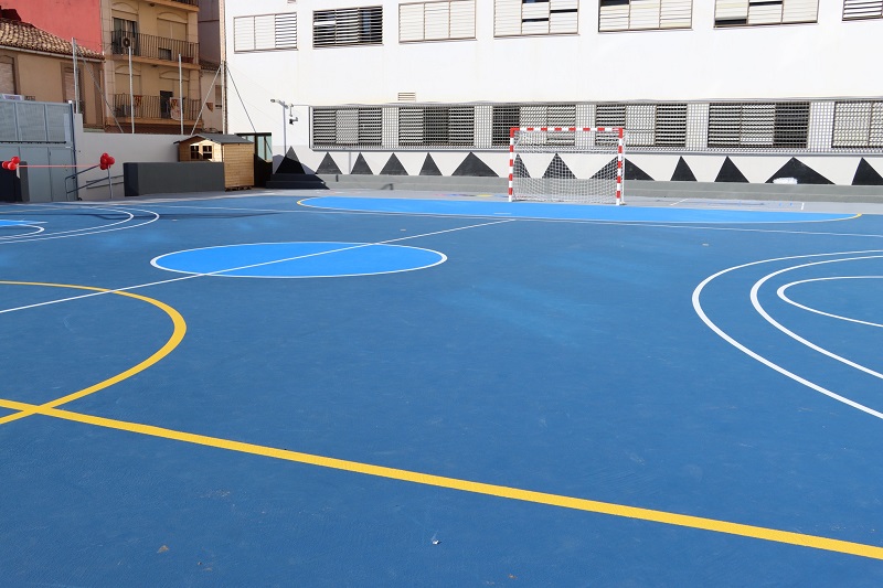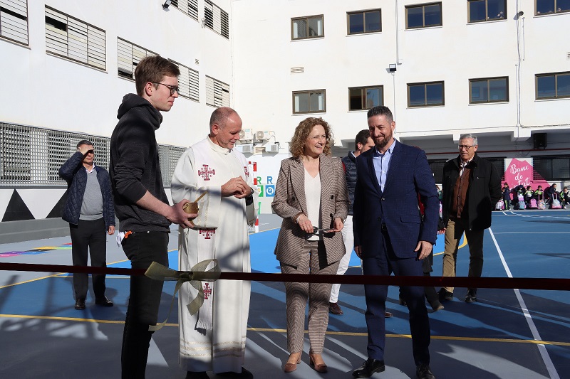 La renovación del patio del colegio ha sido posible gracias al apoyo económico de Caixa Popular. El director en Torrent, Sergio Monleón, junto con la alcaldesa de la localidad, Amparo Folgado, fueron los encargados de cortar la cinta inaugural en un acto que tuvo lugar a la salida de las clases.