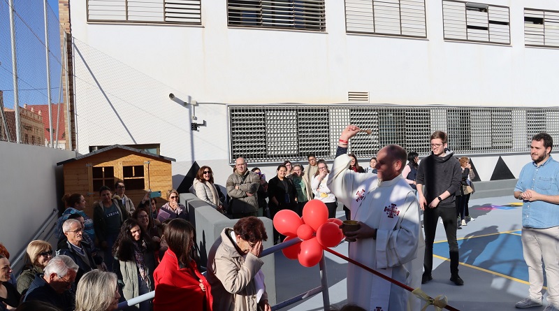 La bendición del patio corrió a cargo del párroco y superior de la comunidad, el P. José Vicente Miguel, acompañado en todo momento por el director del centro, Antoni Ros, y con la presencia no sólo de los alumnos y alumnas del centro, sino también de padres y madres.