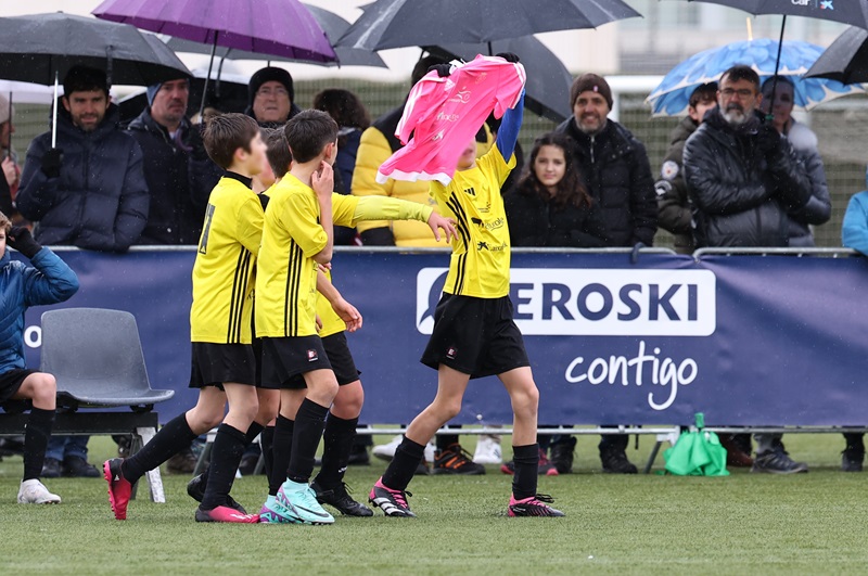“Estoy contento por el gesto que hemos tenido con la camiseta de Iñigo Mendigacha. Ha sido un partido de muchas emociones para mí. Hablando con la familia queríamos hacer algo especial porque lo tuve en un Interescolar y tenía la espinita clavada. Queríamos hacer un homenaje con los chicos también de su quinta, que están casi todos aquí. Hemos hecho la charla antes del partido todos juntos. Ha sido emocionante”, confesaba nada más terminar el partido el técnico y profesor del Colegio, Fernando Aranguren.