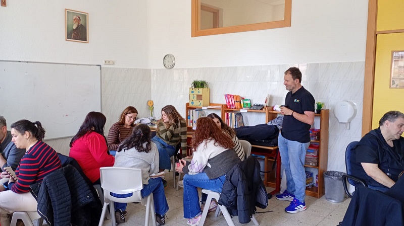 El curso ha comenzado con una parte presencial de 8 horas, para lo cual se han conformado tres grupos territoriales: el día 10 de marzo se llevó a cabo en Pamplona, en el Colegio P. Luis Amigó, hasta donde acudieron desde Vizcaya, Navarra y Cantabria; el 12 de marzo en Madrid, en el Colegio Caldeiro, con compañeros y compañeras de Madrid, Galicia, Guadalajara y Sevilla y el 24 de marzo en Godella (Valencia), en el colegio EPLA, con participantes procedentes de Valencia, Alicante, Castellón, Hellín y Galicia. El curso se complementará con una formación online de 12 horas a través de la plataforma de formación Ayarobla, donde poder complementar y seguir profundizando.