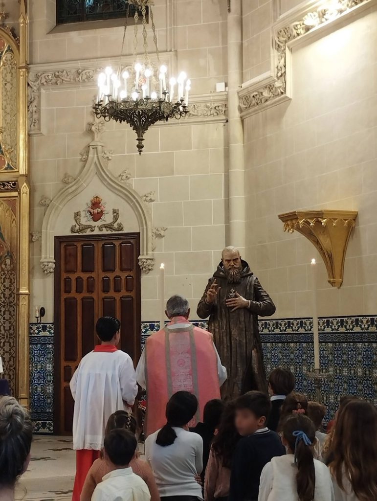 Al pie de la imagen figuró un cuadro de la mártir antoniana Carmen García Moyón, patrona de los Laicos y Cooperadores Amigonianos. Junto a estas imágenes estuvieron colocadas las reliquias de nuestros hermanos mártires, que fueron veneradas por los fieles. Dimos gracias a Dios por su testimonio valiente y generoso. A ellos les rogamos que nosotros sepamos vivir con fidelidad el Evangelio.
