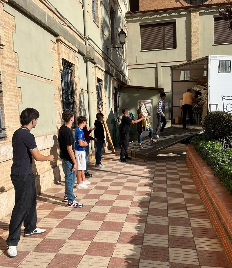 Esa misma mañana el camión llegó al colegio Inmaculado Corazón de María de Valencia, donde el director de Secundaria y Bachiller, Jovi, no dudó en facilitar un espacio para ir repartiendo el material según lo fueran necesitando los colegios afectados. Además, movilizó tropas, y profesores, religiosas y alumnos estaban esperando para echar una mano con la descarga del mismo.