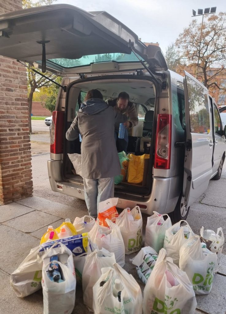 Nos solicitaron productos de limpieza para lavar la ropa, microondas y mobiliario escolar, y desde el cole nos pusimos a ello. Poco tardamos en darnos cuenta que solos no haríamos mucho, y es aquí donde entra en acción la inconmensurable colaboración de Mamen Escribano, Javier F. Galvín y el Colegio Fundación Caldeiro. Gracias a la colaboración de familias, comunidad religiosa y claustro de ambos colegios, fuimos capaces de llevar un camión lleno de mobiliario escolar y tres furgonetas con los productos de limpieza y microondas. Aunque ya se había contribuido con la Provincia a través del Fondo de Solidaridad, la respuesta de nuestras comunidades educativas fue, aun así, extraordinaria.