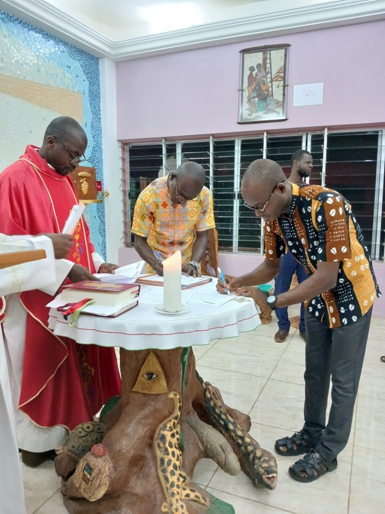 Fue durante una Eucaristía presidida por el maestro de novicios, el padre Sosthène AYEGBÉ, acompañado por el vicemaestro de novicios, el hermano Alexandre ZIANSÉ. Acompañando a los seis nuevos novicios en esta importante celebración estaban todos los demás religiosos de la comunidad Mártires Amigonianios de Benín, junto con los hermanos Liberole, Descartes y Sylvestre, de la comunidad Luis Amigó de Costa de Marfil, así como los postulantes y aspirantes de Benín.