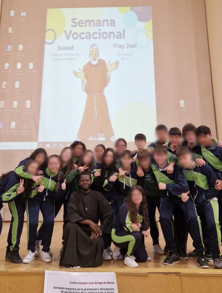 En EPLA y en el Colegio Santa Rita la Semana Vocacional ha tenido un protagonista muy especial: el P. Joël Bokossa, religioso de nuestra comunidad Mártires Amigonianos de Benín. Él ha sido el encargado de hablar de su vocación y de su apostolado en el Centro Escolar Luis Amigó de Abomey-Calavi, uno de los dos proyectos beneficiarios de la Campaña de Solidaridad de este curso, junto al dispensario de las Hermanas Terciarias Capuchinas en Gló-Djigbé.