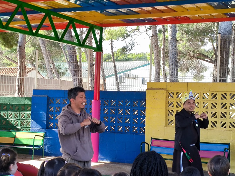 La jornada fue especialmente emotiva gracias a la presencia de los religiosos Fr. Helbert Anthong y Fr. John Bhe Neduaza, quienes nos deleitaron con su cercanía y sencillez. Uno de los momentos más mágicos se vivió cuando se unieron a los más pequeños de Infantil para cantar, llenando el hall de voces blancas, risas y ese espíritu de alegría que solo los niños y la música saben contagiar.