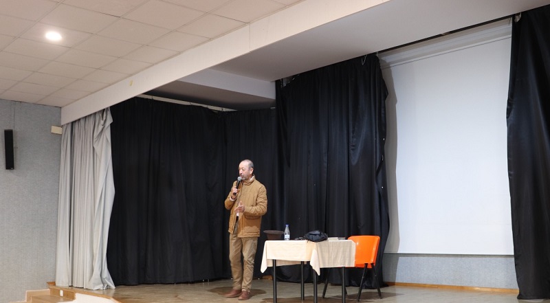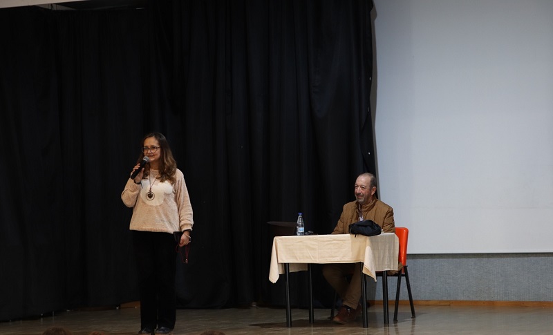 A su llegada al colegio la escuchamos a algunos de los alumnos de Primaria reconocerle como “el abuelo de Marcos, el del sombrero”. Su presentación la hizo su nieta Blanca, quien recalcó lo familiar y estudioso que es su abuelo, arrancando el aplauso de los compañeros que allí se encontraban.